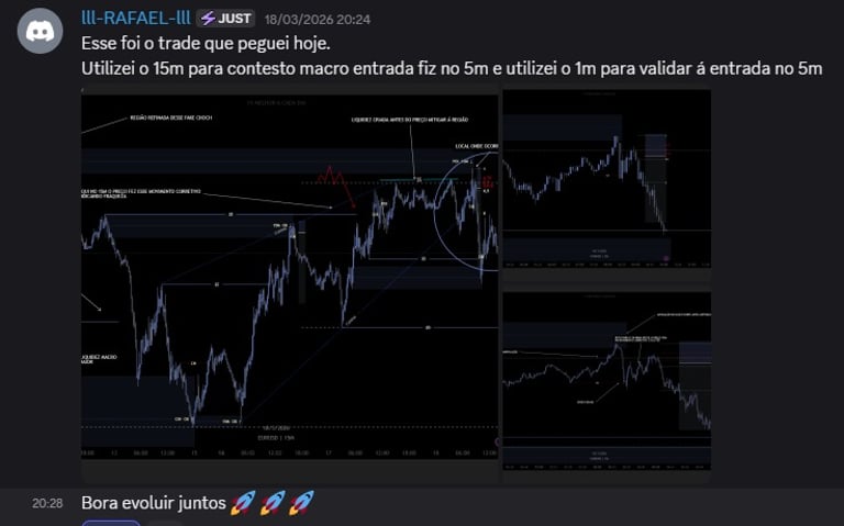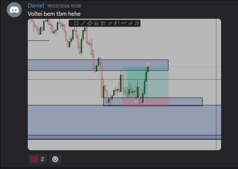 Você aprende a identificar contexto, fluxo e narrativa do preço — não apenas zonas isoladas.